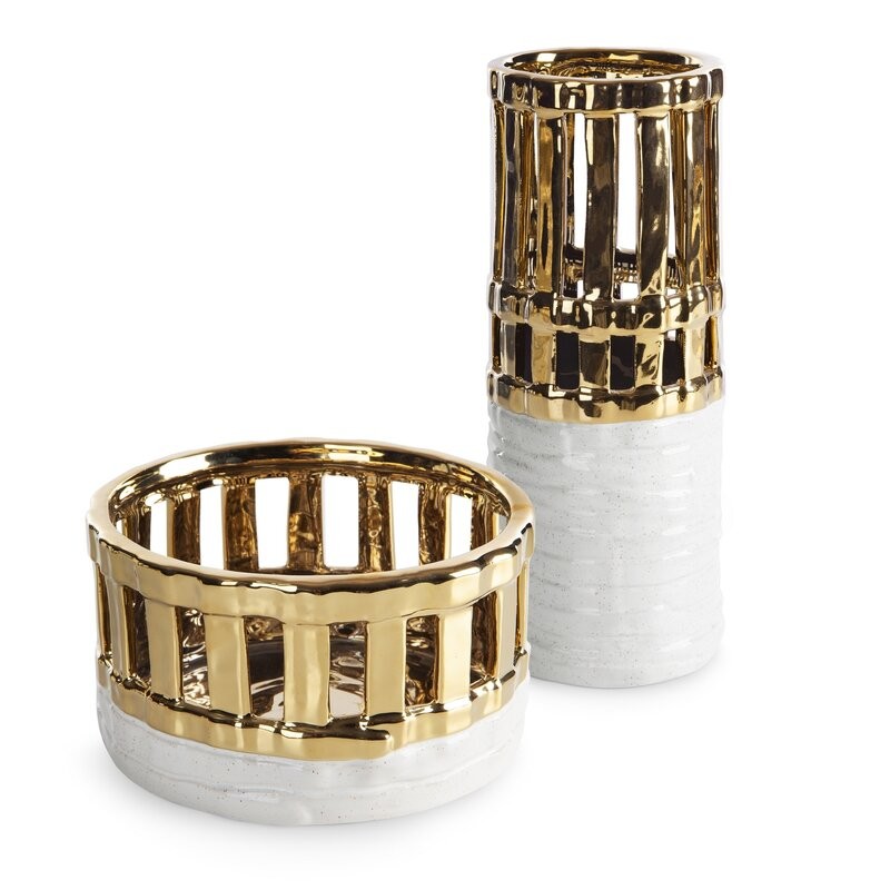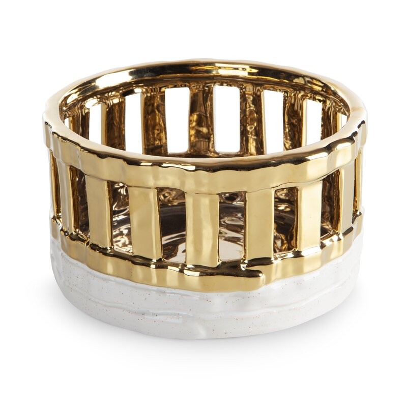 Ta wyjątkowa misa dekoracyjna wykonana z glinki ceramicznej to połączenie elegancji i subtelnego rzemiosła. Jej ażurowe zdobienia nadają lekkości i artystycznego charakteru, a biało-złota kolorystyka wprowadza do wnętrza nutę luksusu. Misa doskonale prezentuje się jako samodzielna dekoracja lub w zestawieniu z innymi elementami kolekcji jak wazony. To stylowy akcent, który podkreśli wyjątkowy charakter salonu, jadalni lub przedpokoju.