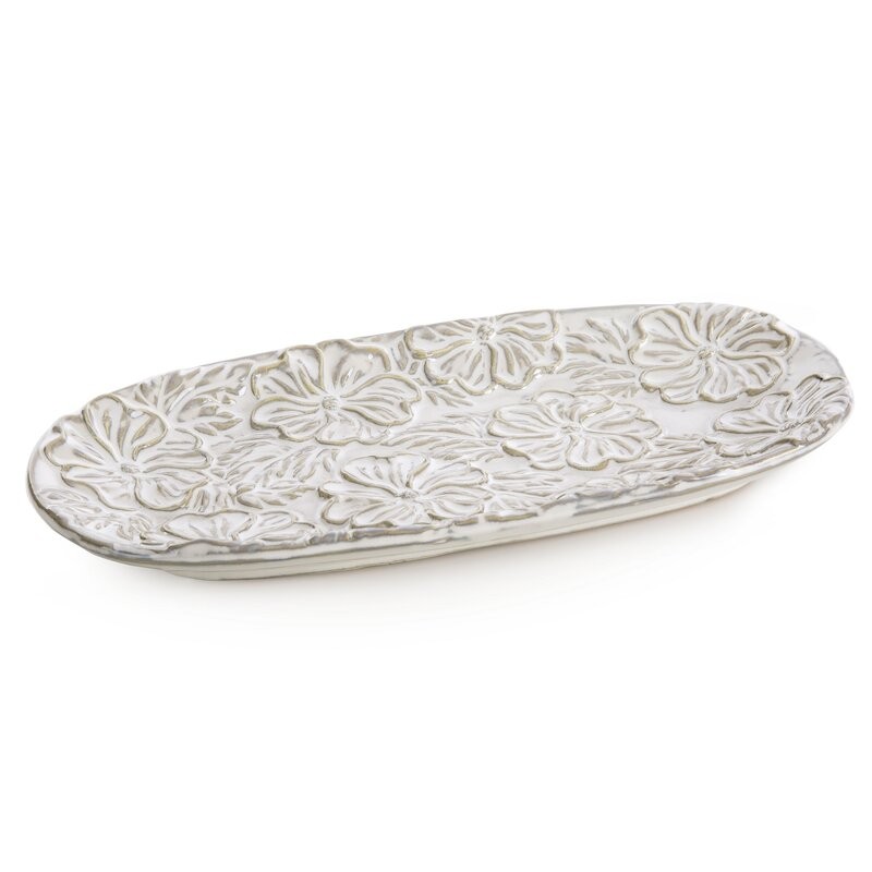 Patera dekoracyjna szerokość: 50 cm, długość: 20 cm, kolor: biały, Skład: glinka ceramiczna