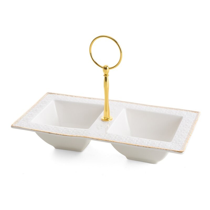 Patera ceramiczna SENA z wytłaczanym wzorem prostokątna złota