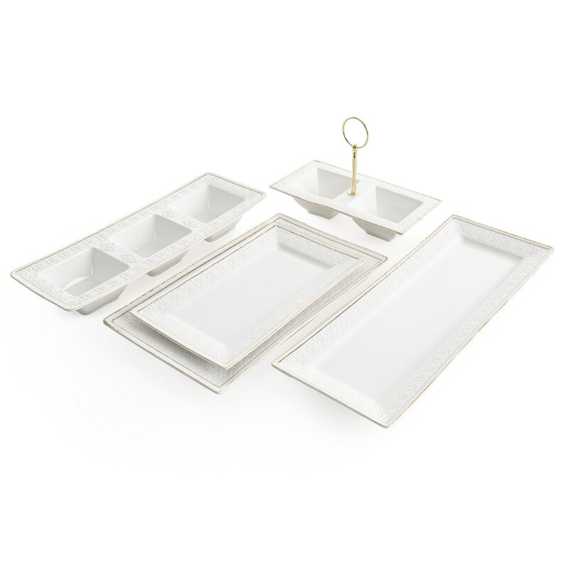 Wzbogać swoją kuchnię lub stół o wyjątkowy element, który łączy funkcjonalność z elegancją. Ta patera wykonana z naturalnej glinki ceramicznej zachwyca subtelnym wytłaczanym wzorem, a delikatne złote akcenty nadają jej wyjątkowego charakteru. Idealna do serwowania słodkości, owoców lub jako efektowna dekoracja – sprawia, że codzienne chwile stają się bardziej wyjątkowe.