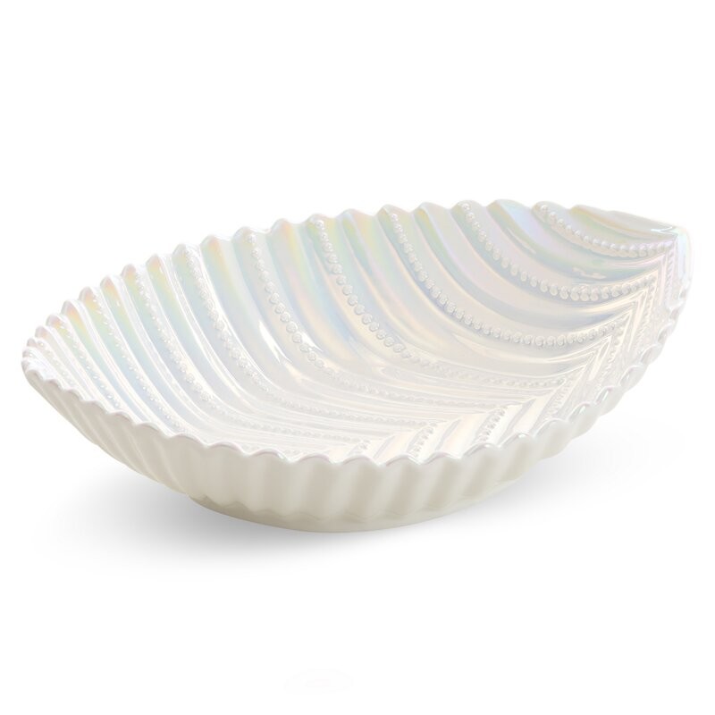 Patera dekoracyjna szerokość: 31 cm, długość: 21 cm, kolor: perłowy, Skład: 100% glinka ceramiczna