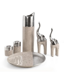 Patera dekoracyjna szerokość: 41 cm, długość: 15 cm, kolor: srebrny, Skład: glinka ceramiczna SZT.2