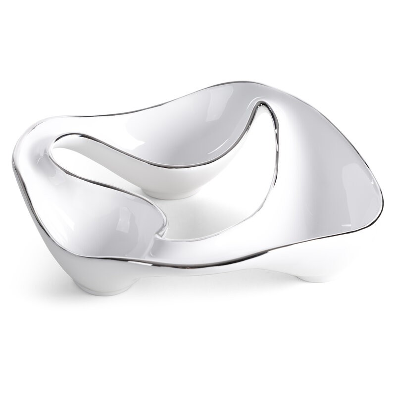 Patera dekoracyjna szerokość: 39 cm, długość: 13 cm, kolor: srebrny, Skład: 100% glinka ceramiczna SZT.2
