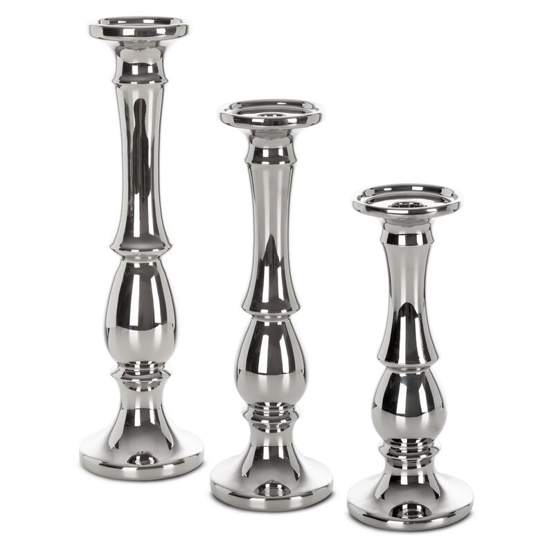 świecznik dekoracyjny szerokość: O 11 cm, długość: 39 cm, kolor: srebrny, Skład: 100% glinka ceramiczna SZT.2