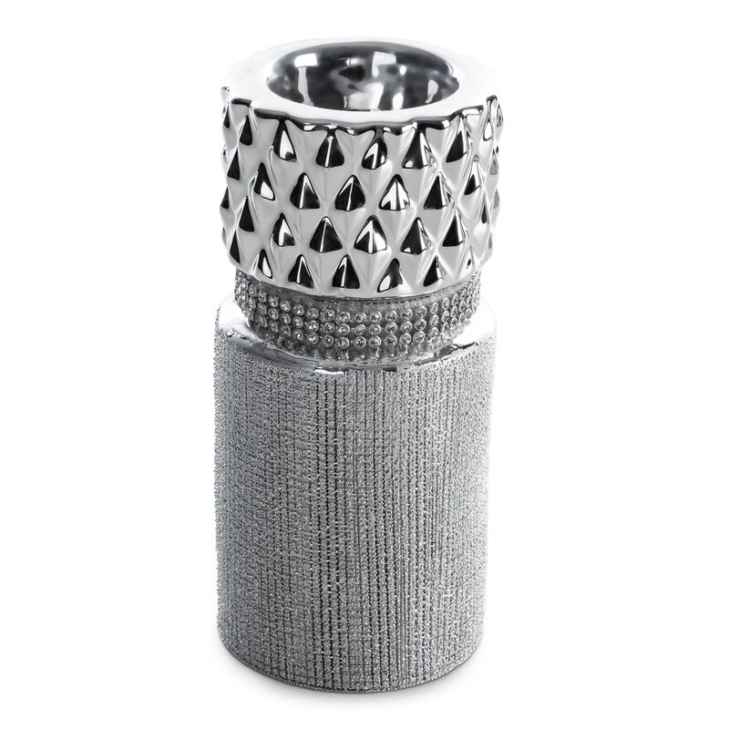 świecznik dekoracyjny szerokość: O 10 cm, długość: 25 cm, kolor: srebrny, Skład: 100% glinka ceramiczna SZT.2
