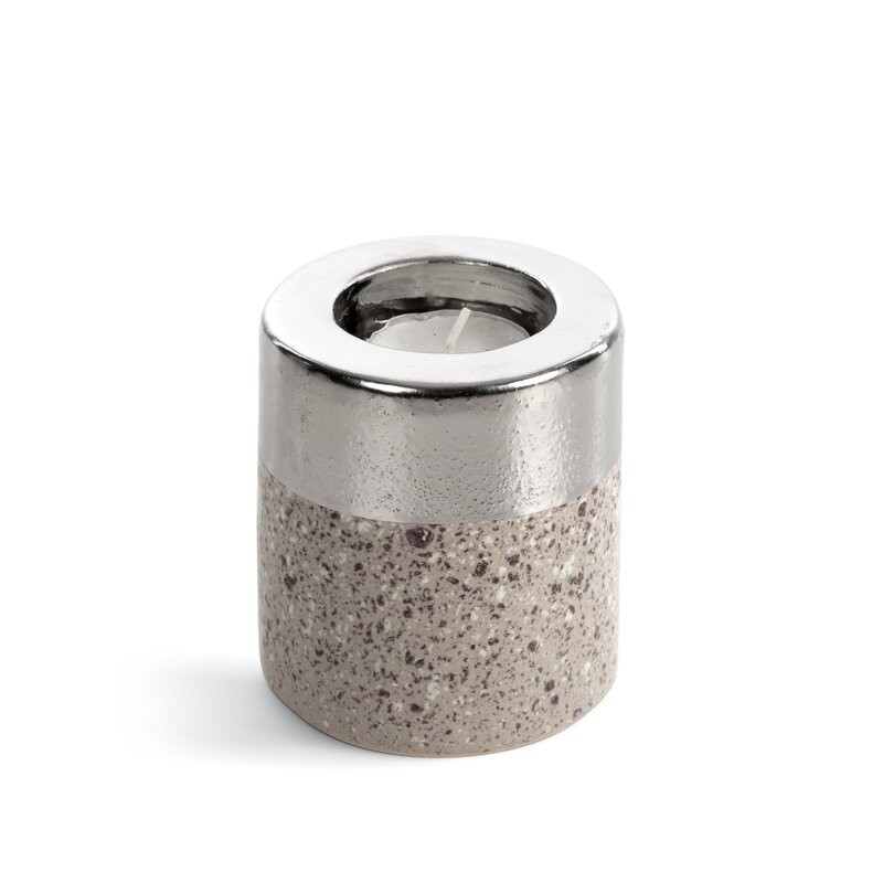 świecznik dekoracyjny szerokość: O 9 cm, długość: 13 cm, kolor: srebrny, Skład: 100% glinka ceramiczna SZT.2