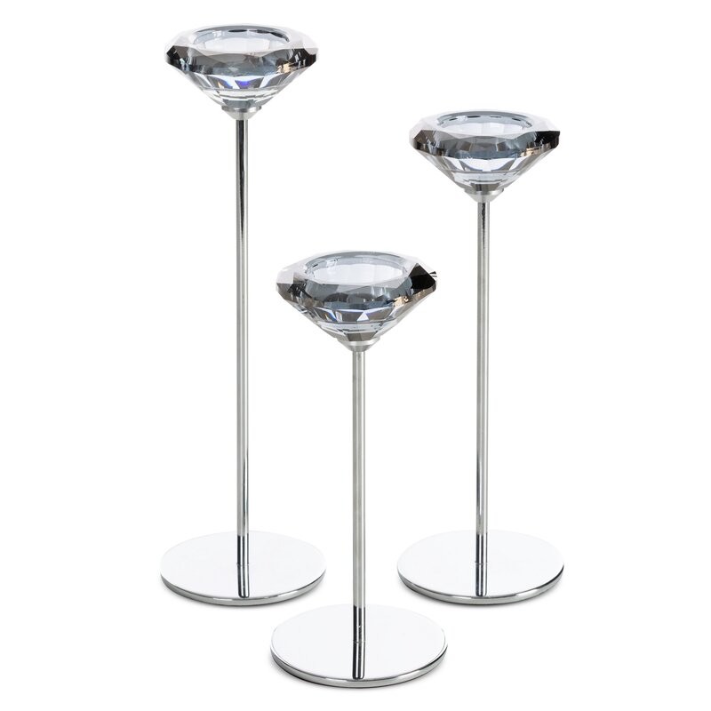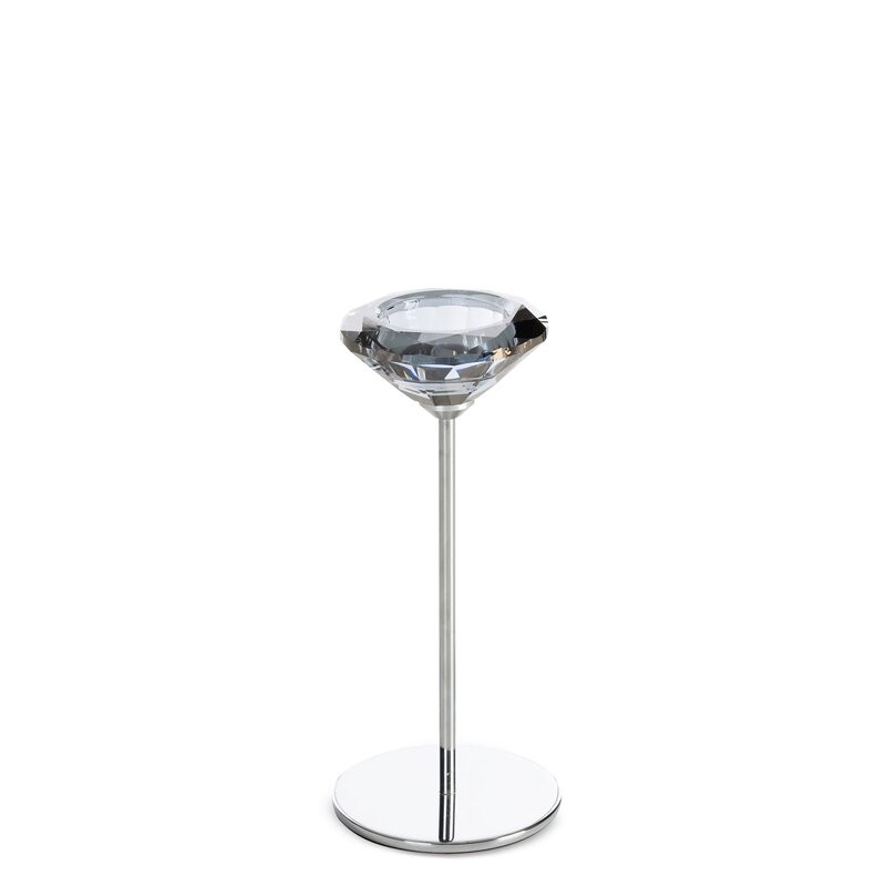 świecznik dekoracyjny szerokość: O 8 cm, długość: 19 cm, kolor: transparentny, Skład: 60% metal, 40% kryształ