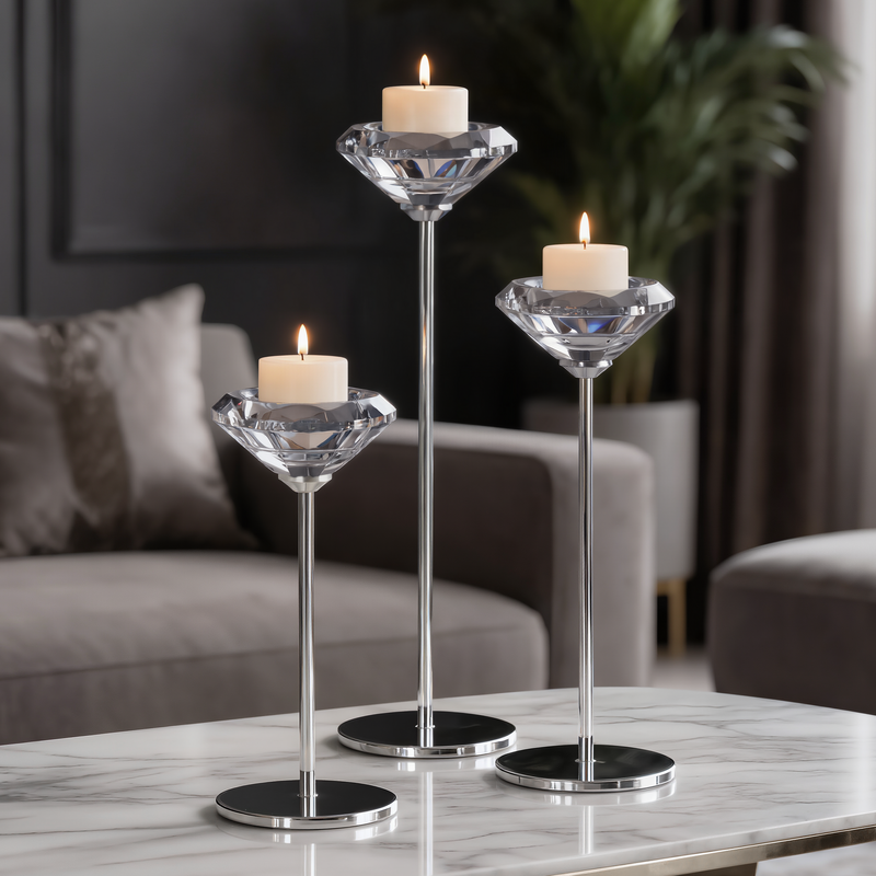świecznik dekoracyjny szerokość: O 8 cm, długość: 23 cm, kolor: srebrny, Skład: 60% metal, 40% kryształ