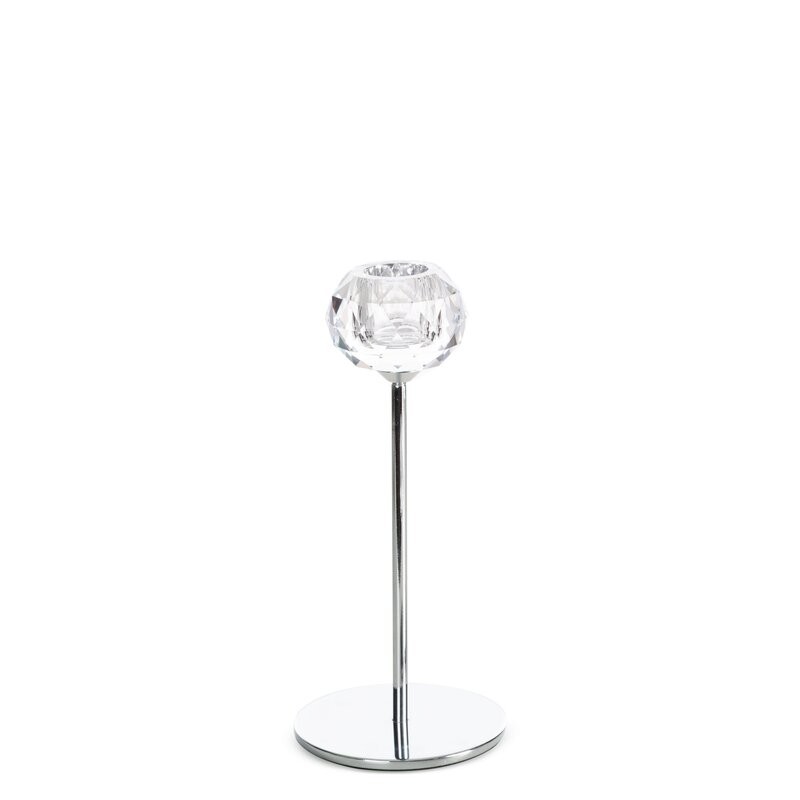 świecznik dekoracyjny szerokość: O 12 cm, długość: 19 cm, kolor: transparentny, Skład: 60% metal, 40% kryształ