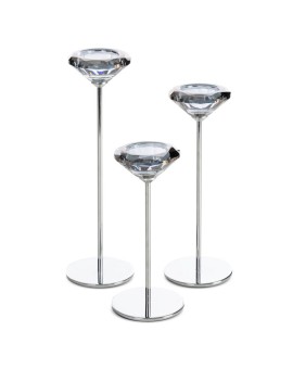 świecznik dekoracyjny szerokość: O 8 cm, długość: 19 cm, kolor: srebrny, Skład: 60% metal, 40% kryształ