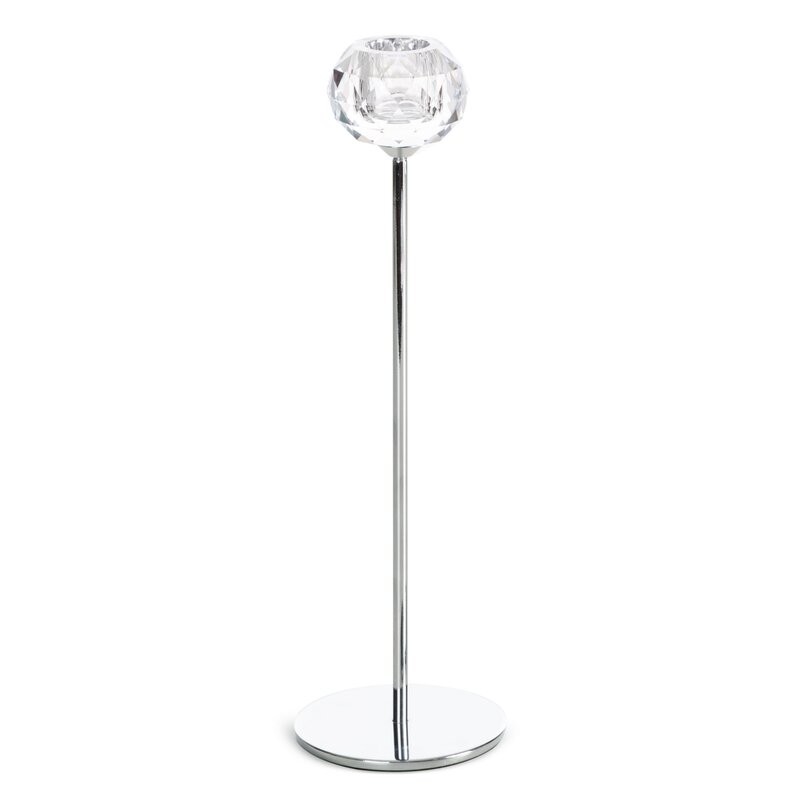 świecznik dekoracyjny szerokość: O 8 cm, długość: 18 cm, kolor: srebrny, Skład: 60% metal, 40% kryształ