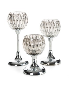 świecznik dekoracyjny szerokość: O 11 cm, długość: 17 cm, kolor: srebrny, Skład: 60% metal, 40% szkło