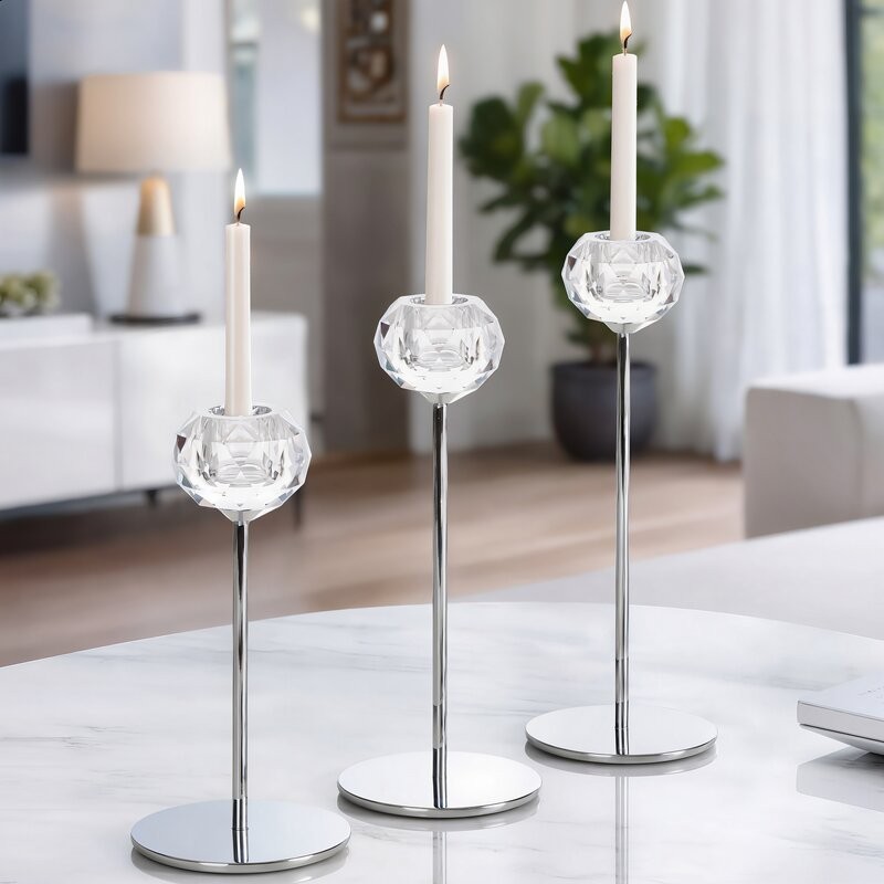 świecznik dekoracyjny szerokość: O 8 cm, długość: 27 cm, kolor: transparentny, Skład: 60% metal, 40% kryształ