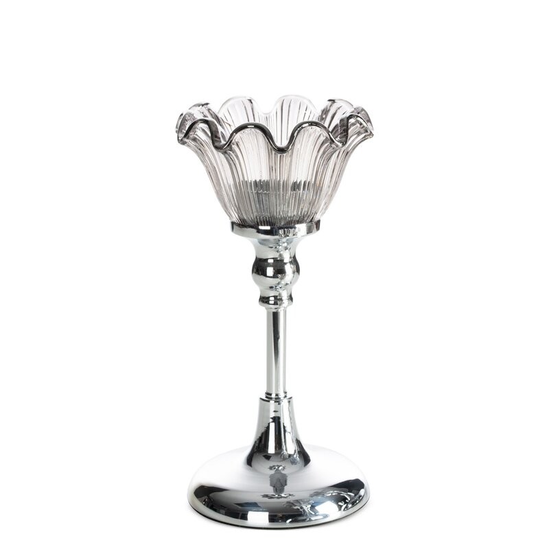 świecznik dekoracyjny szerokość: O 12 cm, długość: 26 cm, kolor: srebrny, Skład: 60% metal, 40% szkło