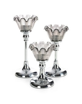 świecznik dekoracyjny szerokość: O 11 cm, długość: 17 cm, kolor: srebrny, Skład: 60% metal, 40% szkło