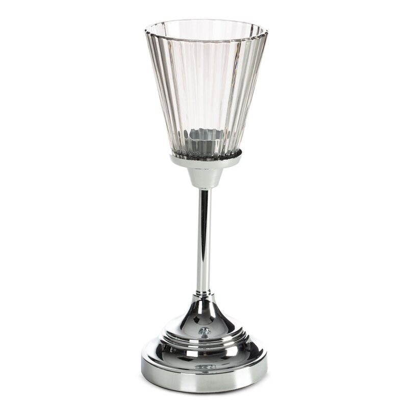 świecznik dekoracyjny szerokość: O 11 cm, długość: 27 cm, kolor: srebrny, Skład: 60% metal, 40% szkło