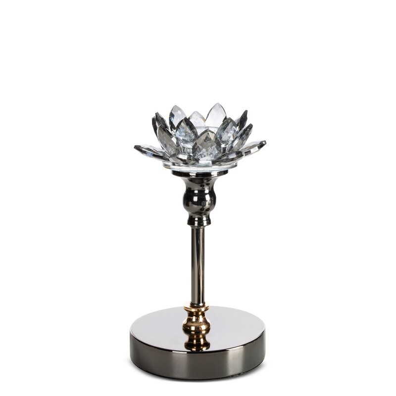 świecznik dekoracyjny szerokość: O 12 cm, długość: 19 cm, kolor: transparentny, Skład: 60% metal, 40% kryształ