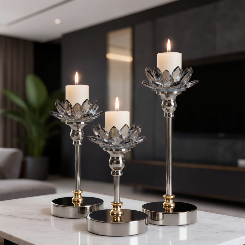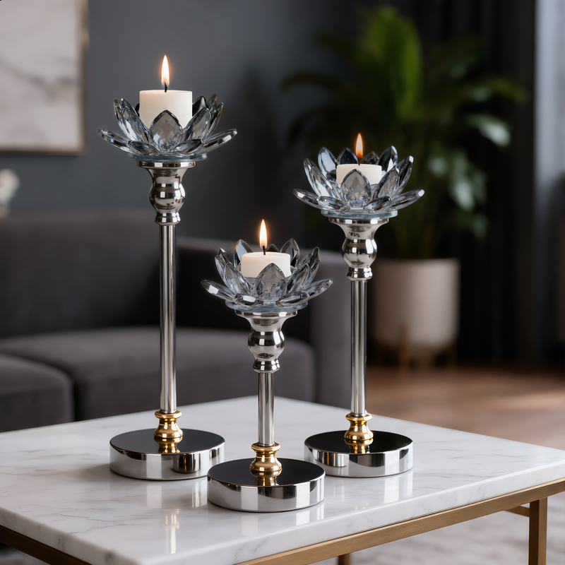 świecznik dekoracyjny kolor: transparentny, Skład: metal+szkło