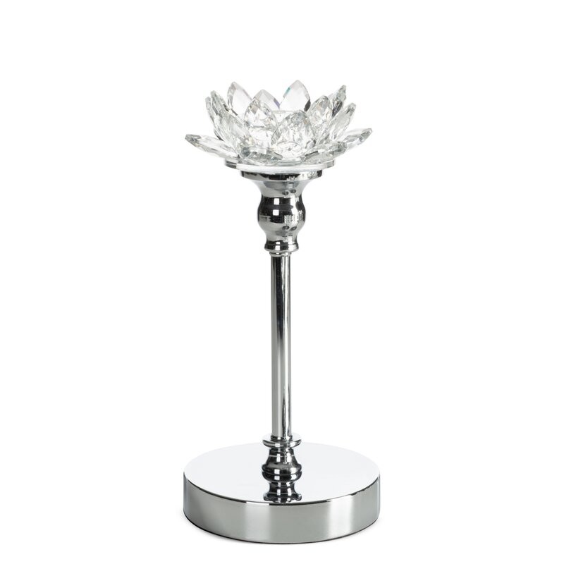 świecznik dekoracyjny szerokość: O 8 cm, długość: 23 cm, kolor: transparentny, Skład: 60% metal, 40% kryształ