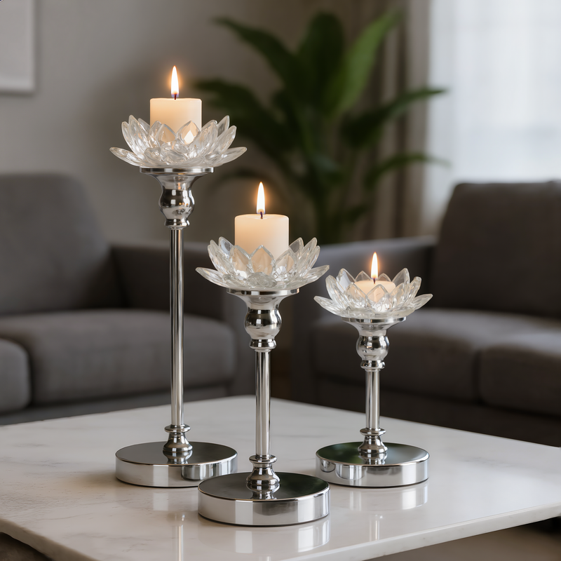 świecznik dekoracyjny szerokość: 11 cm, długość: 11 cm, kolor: srebrny, Skład: 100% glinka ceramiczna SZT.2