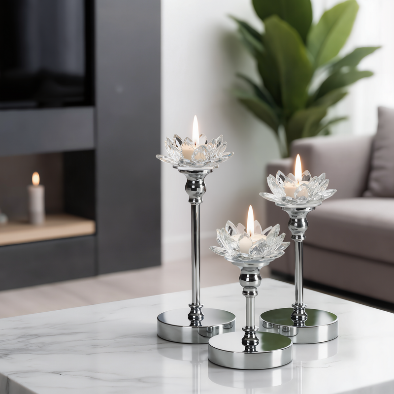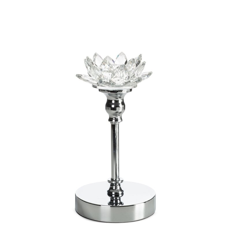 świecznik dekoracyjny szerokość: O 8 cm, długość: 18 cm, kolor: srebrny, Skład: 60% metal, 40% kryształ