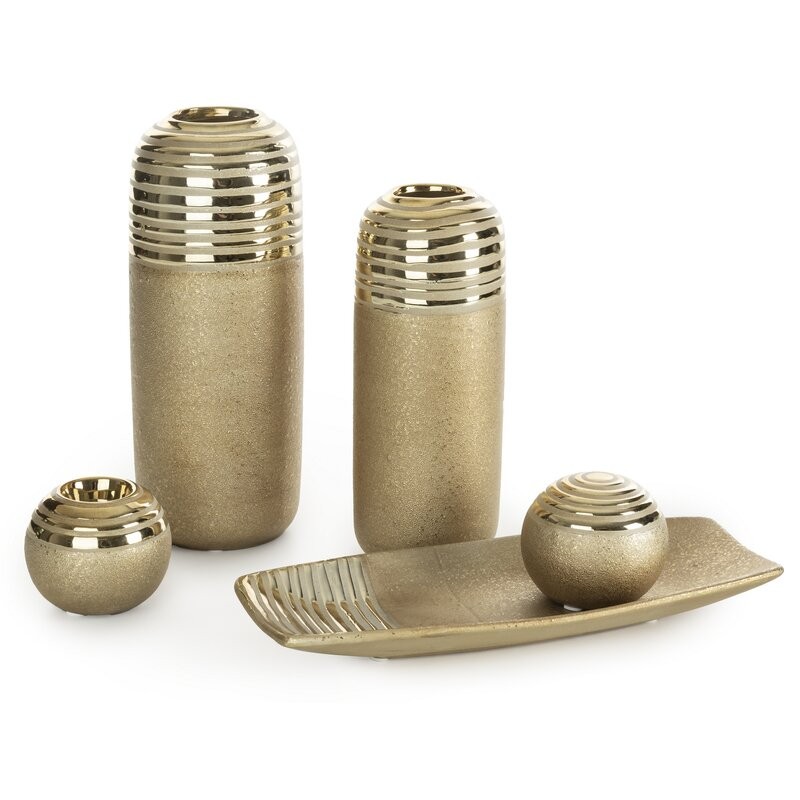 Wazon ceramiczny DORI złota ze żłobieniami