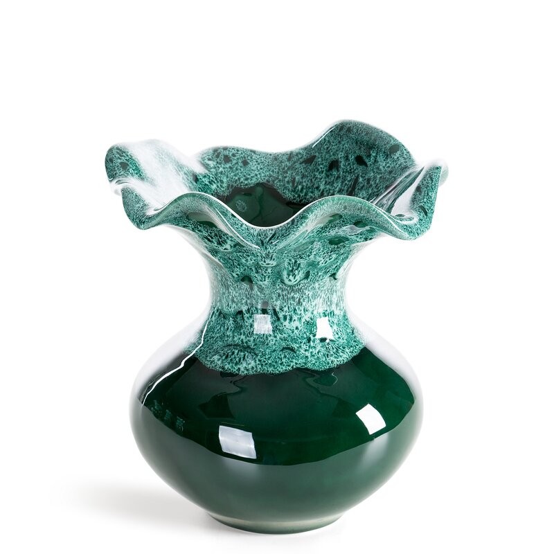 Wazon dekoracyjny szerokość: 19 cm, długość: 12 cm, kolor: zielony, Skład: glinka ceramiczna