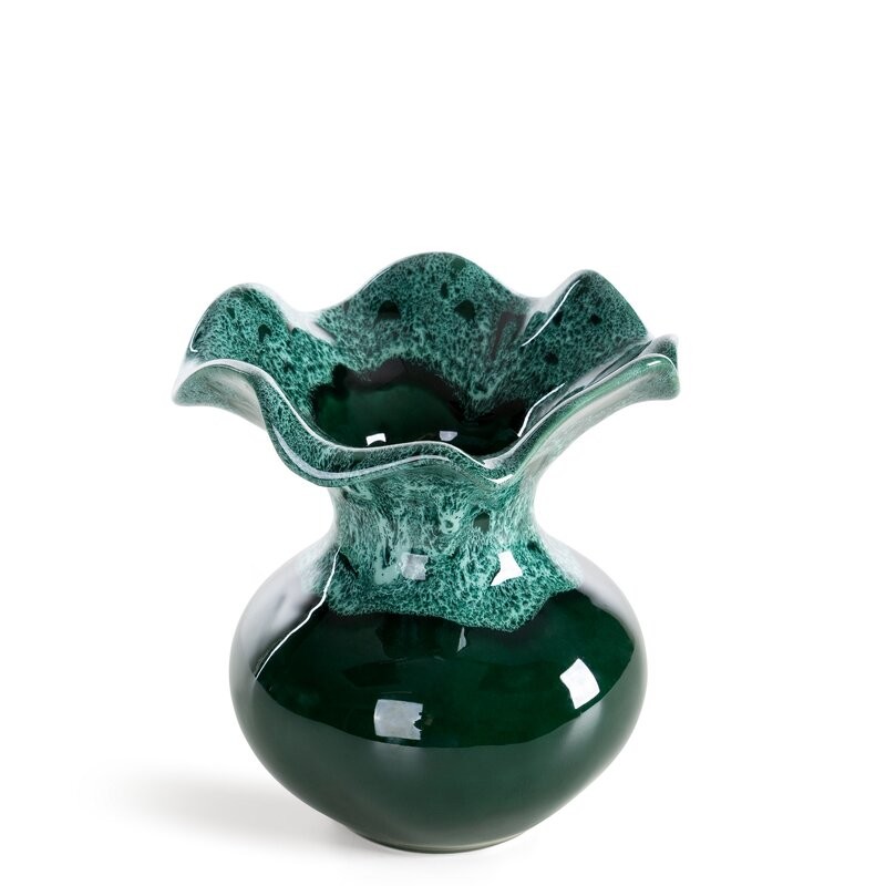 Wazon dekoracyjny szerokość: 22 cm, długość: 12 cm, kolor: zielony, Skład: glinka ceramiczna