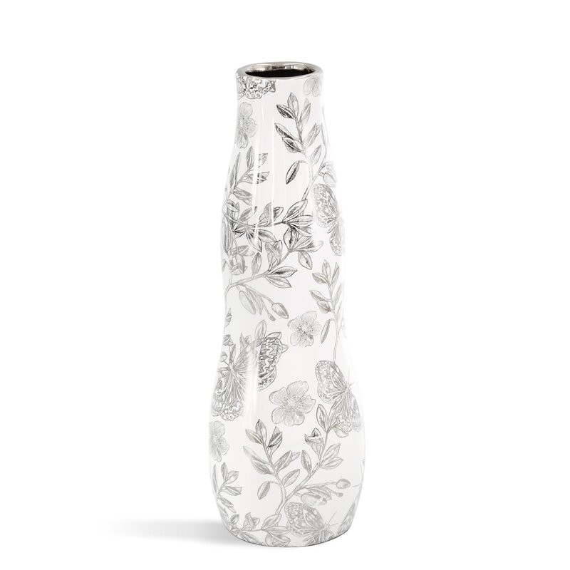 Wazon dekoracyjny szerokość: (fi) 14 cm, długość: 25 cm, kolor: srebrny, Skład: glinka ceramiczna