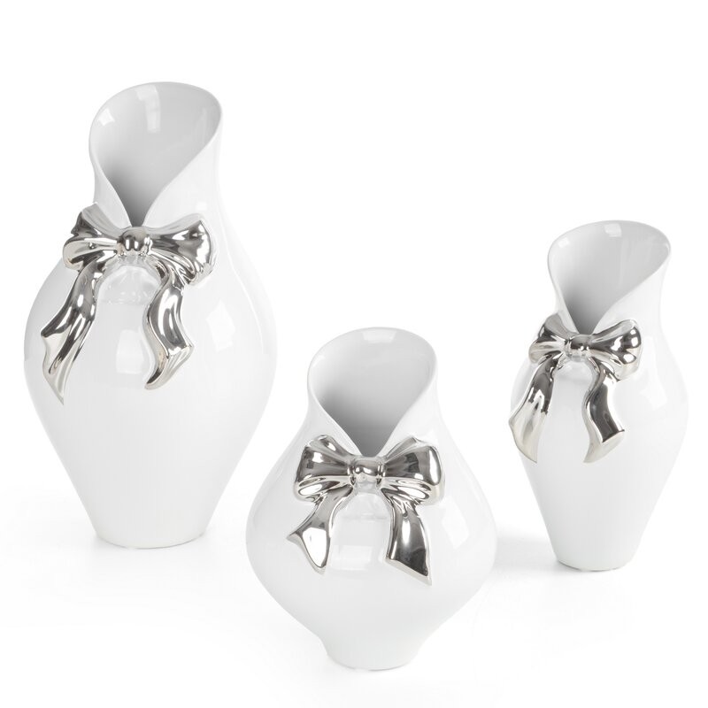 Wazon dekoracyjny szerokość: (fi) 14 cm, długość: 30 cm, kolor: srebrny, Skład: glinka ceramiczna