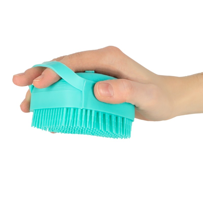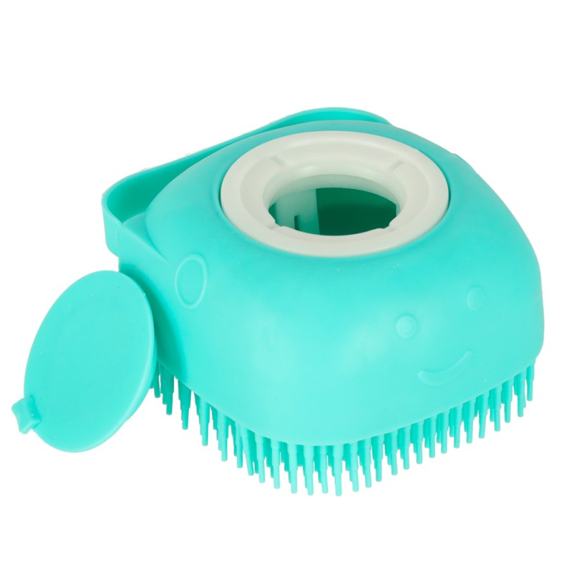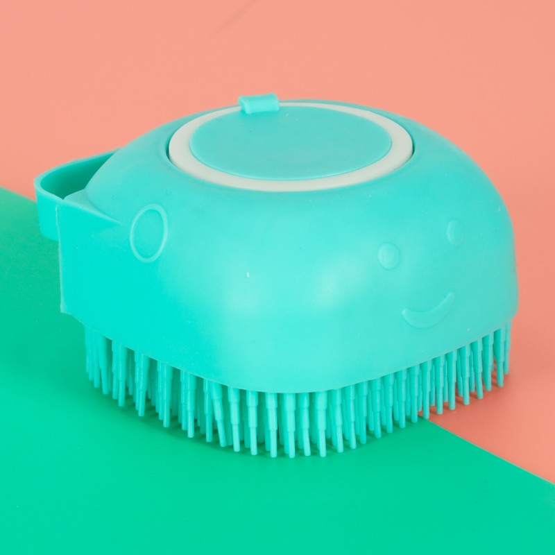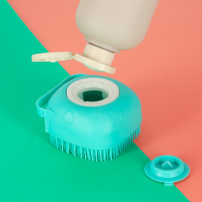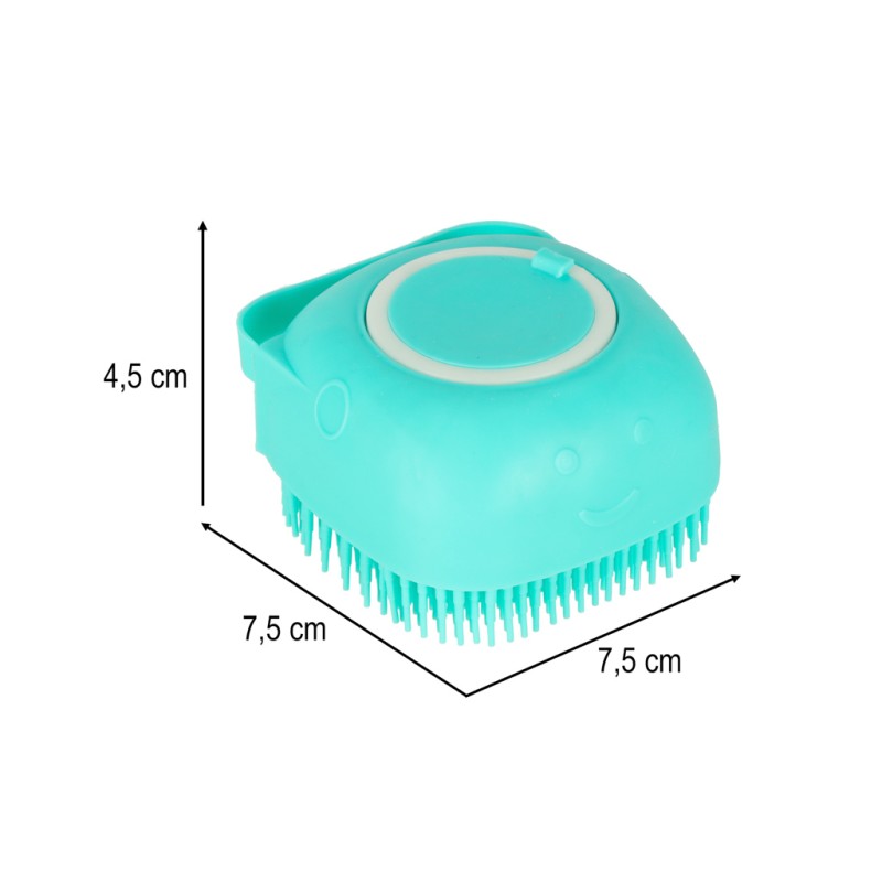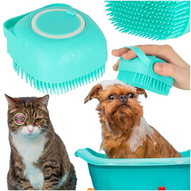 Silikonowa szczoteczka z dozownikiem szamponu do mycia zwierząt.