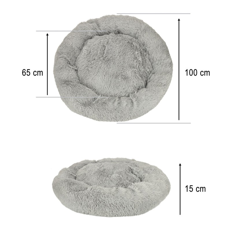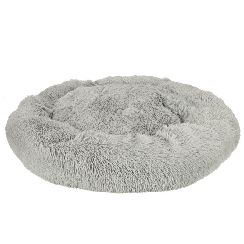 Pluszowe legowiska dla psa lub kota. Zapewnia komfortowy odpoczynek – podniesione krawędzie podtrzymują głowę i szyję zwierzaka. Wykonane z miękkiego i przyjemnego dotyku materiału w jasno-szarym kolorze. Posiada antypoślizgowe podłoże, zapobiegają przesuwaniu się legowiska.