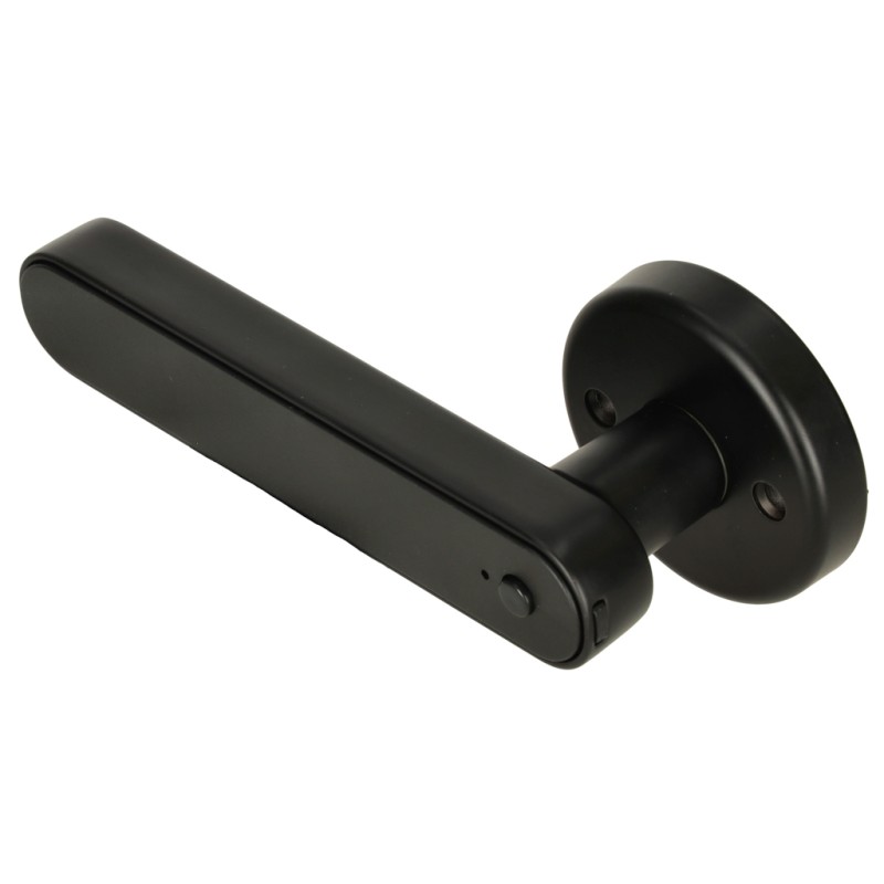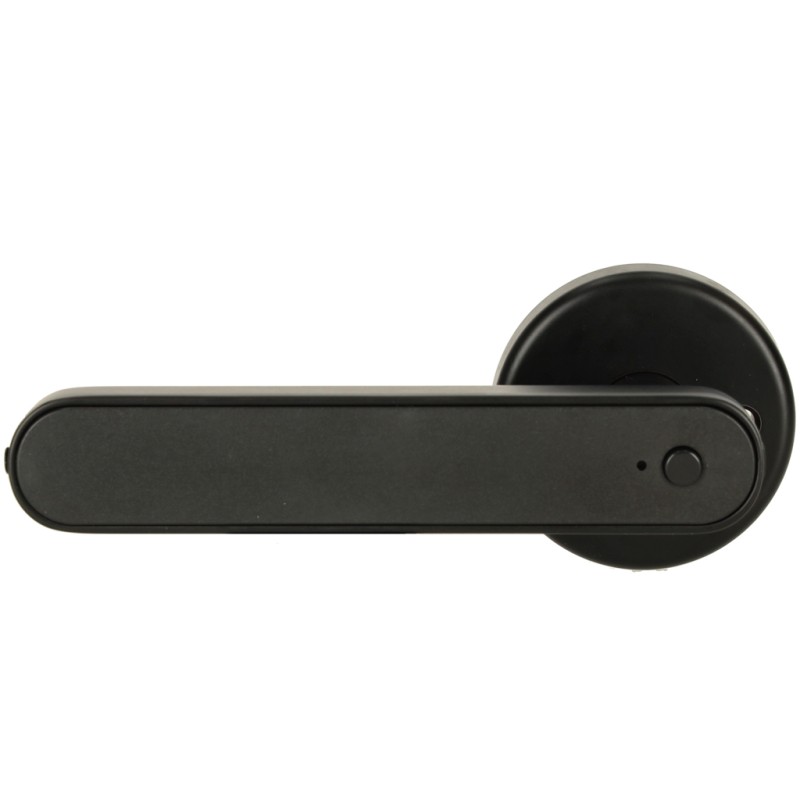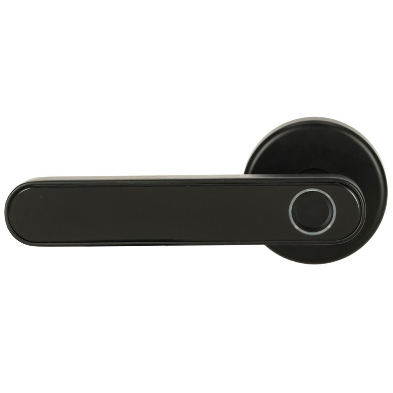 Wielofunkcyjna cyfrowa klamka do drzwi z czytnikiem linii papilarnych oraz kart RFID oraz panelem dotykowym. Łączy się z siecią Wi-Fi oraz Bluetooth - można zarządzać dostępem do wnętrz z poziomu aplikacji mobilnej. Wymiary: 33,5 x 3,5 x 13 cm