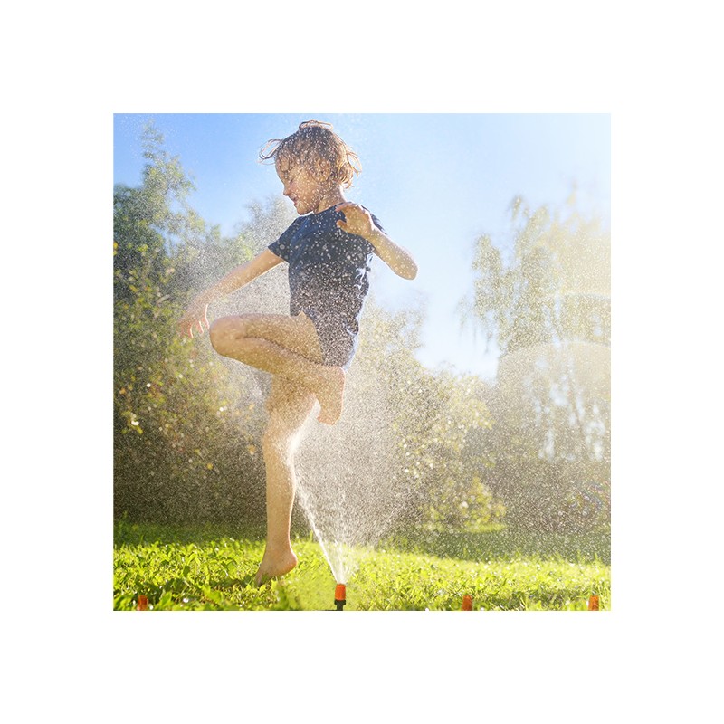 Przewód zraszacza wystarczy podłączyć do węża ogrodowego lub kranu, aby móc się cieszyć delikatną mgiełką ochładzającą Twój dzień!