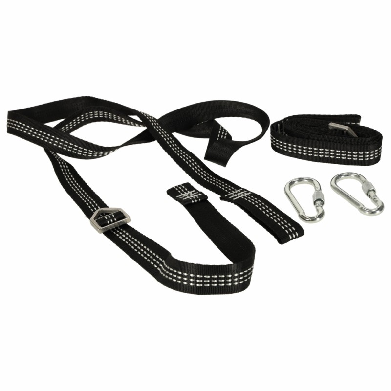 W skład zestawu wchodzą dwa niezwykle wytrzymałe pasy o długości 2 metrów i dwa solidne karabińczyki, każdy o maksymalnym udźwigu 300 kg. Dzięki temu masz pewność, że zawieszone siedzisko pozostanie stabilne i bezpieczne nawet przy intensywnym użytkowaniu.