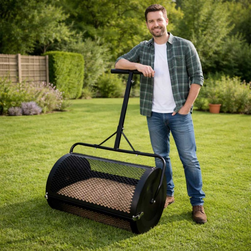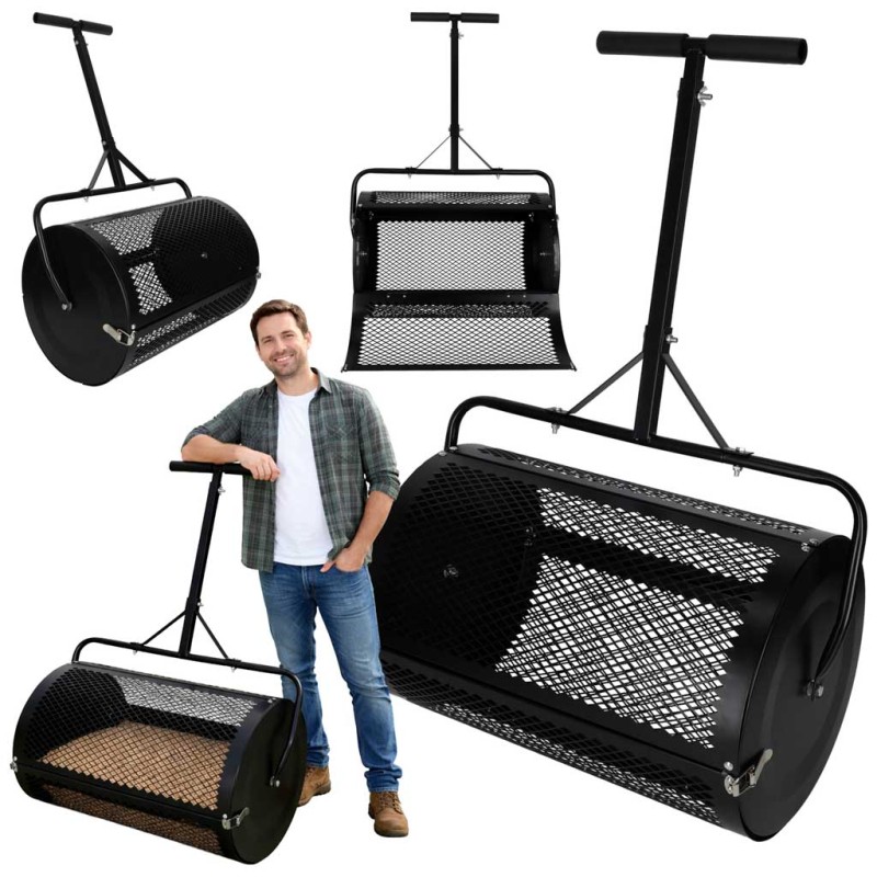 Informacje bezpieczeństwa:Przed użyciem zapoznaj się z instrukcją obsługi. Produkt nie jest zabawką - przechowuj poza zasięgiem dzieci. Używaj tylko na płaskim, równym terenie. Nie przeciążaj rozsiewacza nadmierną ilością materiału. Nie modyfikuj produktu. Podczas pracy używaj rękawic ochronnych. Regularnie sprawdzaj stan siatki, walca i uchwytu.