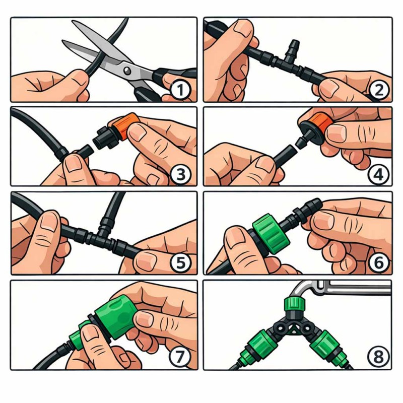 • Proste podłączenie - zestaw wyposażony jest w dysze zraszające, które umożliwiają szybkie podłączenie do źródła wody i natychmiastowe rozpoczęcie nawadniania bez skomplikowanego montażu