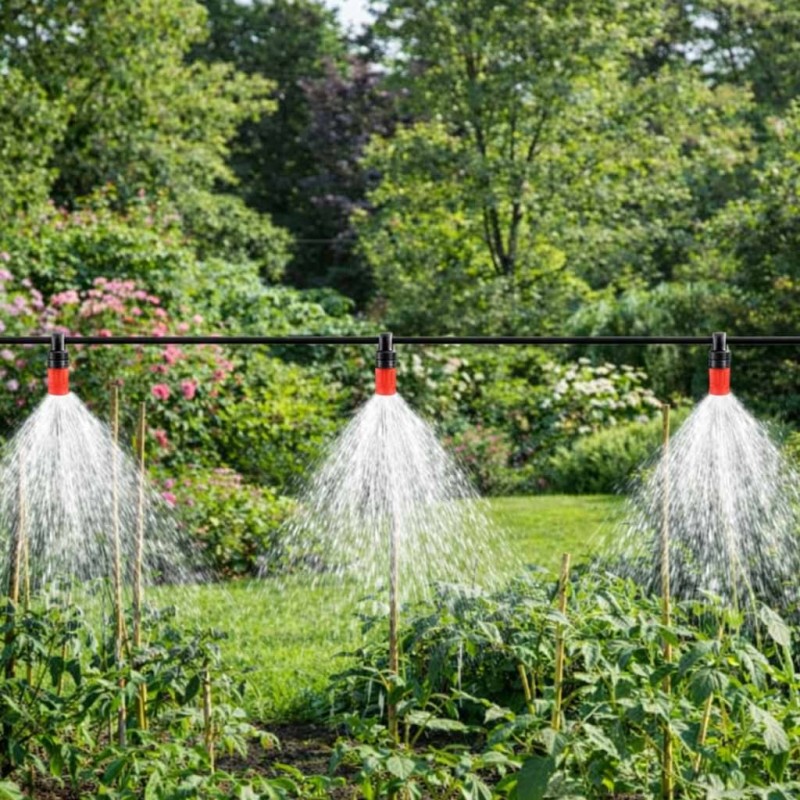 • Wysoka efektywność - precyzyjne dysze rozpylają wodę w formie delikatnej mgiełki lub strumienia, skutecznie nawadniając rośliny i jednocześnie obniżając temperaturę otoczenia