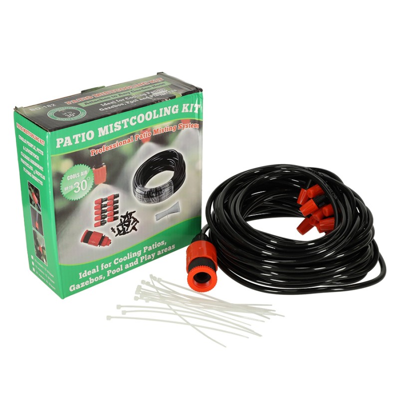 Przewód zraszacza wystarczy podłączyć do węża ogrodowego lub kranu, aby móc się cieszyć delikatną mgiełką ochładzającą Twój dzień!