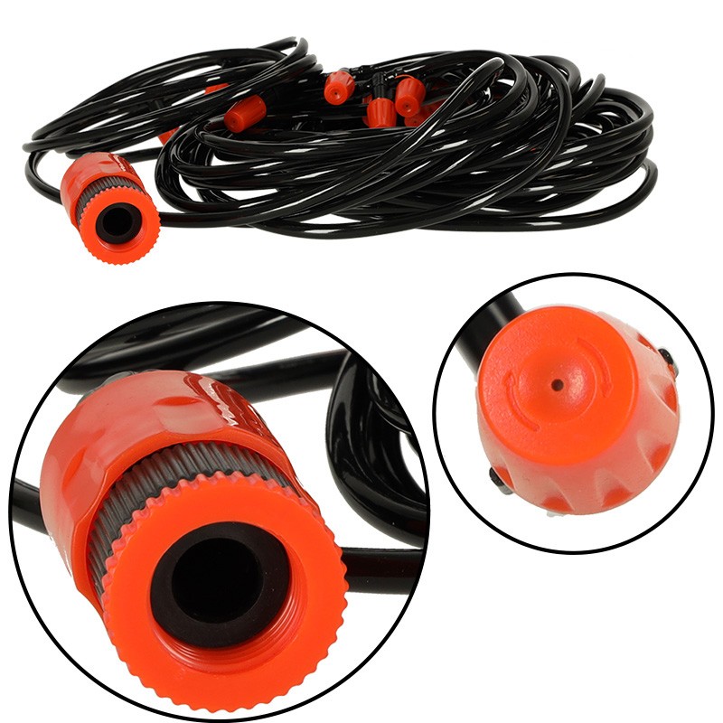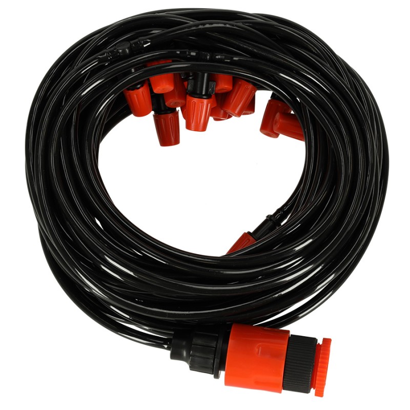 Cały zraszacz ma długość 20 metrów oraz posiada 20 dysz rozmieszczonych w odstępach jednometrowych – dzięki temu wodna mgiełka ma naprawdę spory zasięg. Co więcej, w razie potrzeby wąż można przyciąć do potrzebnej długości, co umożliwia modyfikowanie odległości pomiędzy dyszami.