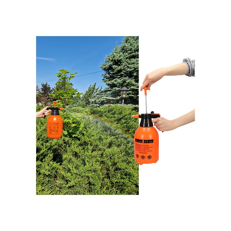 Ten opryskiwacz ogrodowy ręczny działa na podstawie bardzo prostej zasady - za pomocą pompki na górze możesz zwiększyć ciśnienie panujące w zbiorniku, które możesz upuszczać za pomocą przycisku spustowego, dzięki czemu spryskasz swoje rośliny!