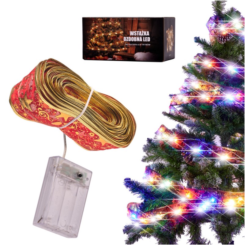 WSTĄŻKA OZDOBNA TAŚMA LED 10M 100LED LAMPKI CHOINKOWE OZDOBA ŚWIĄTECZNA MULTIKOLOR NA BATERIE
