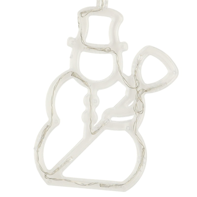 Fantastyczna ozdoba świąteczna z lampkami LED w kształcie bałwana. Wprowadzi bożonarodzeniową magię! Zasilanie: 3 baterie AAA. Montaż: na przyssawkę. Dł. kabla zasilającego: 18cm. Wym. bałwana: 21x16x2cm. Wym. opakowania: 27x20x2.5cm.