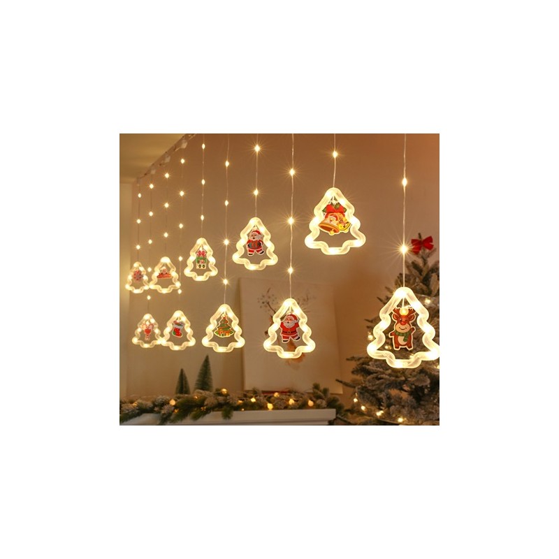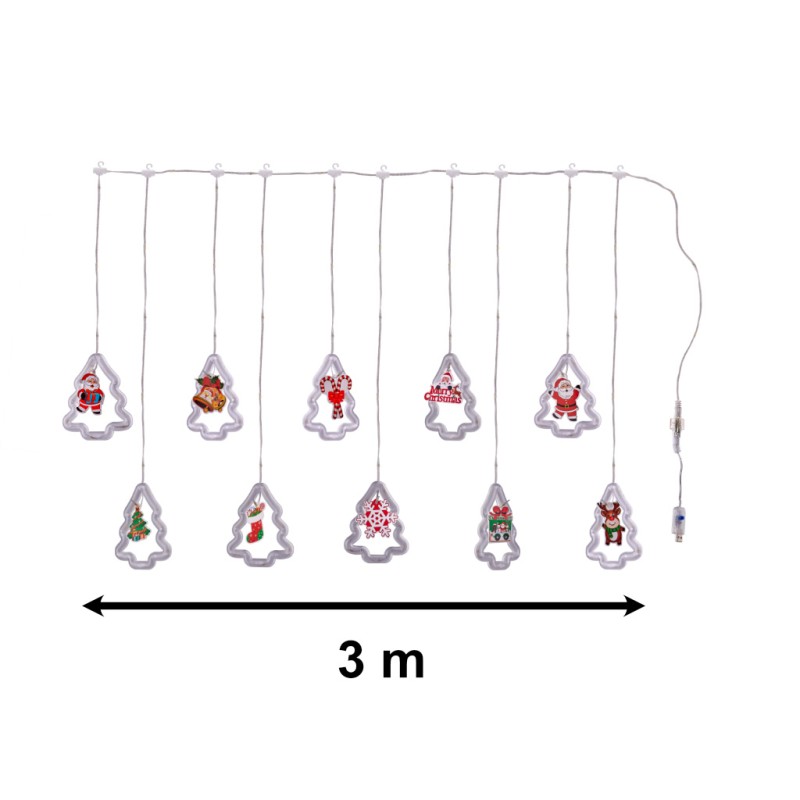 LAMPKI LED KURTYNA Z OBRAZKAMI BOŻE NARODZENIE W CHOINKACH 3M 10 ŻARÓWEK USB