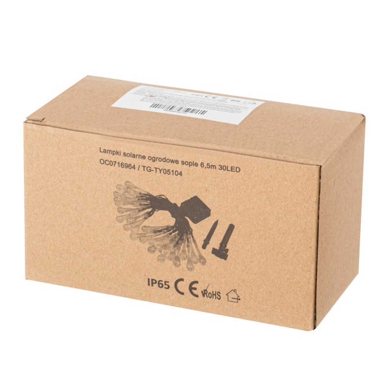 LAMPKI SOLARNE OGRODOWE SOPLE 6,5M 30LED CIEPŁY BIAŁY