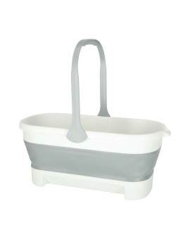 Praktyczne składane wiadro z uchwytem do sprzątania. Ma nieregularne dno z wypustkami służące do czyszczenia mopa podczas mycia podłóg. Wiadro można złożyć na płasko, co ułatwia wygodne przechowywanie. Wymiary: 46,5 cm x 21 cm x 19,5 cm