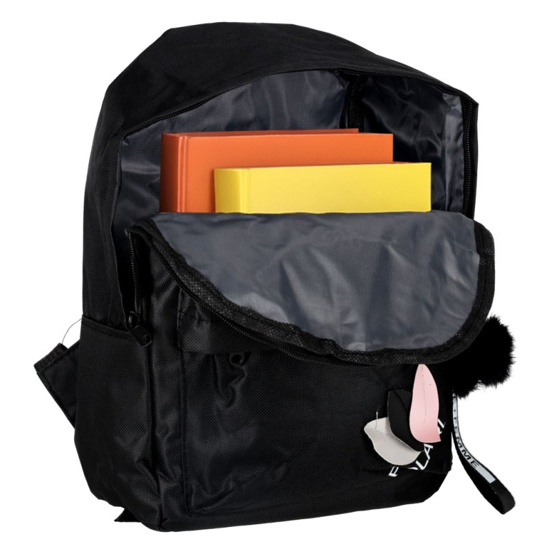 Czarny plecak z breloczkiem: