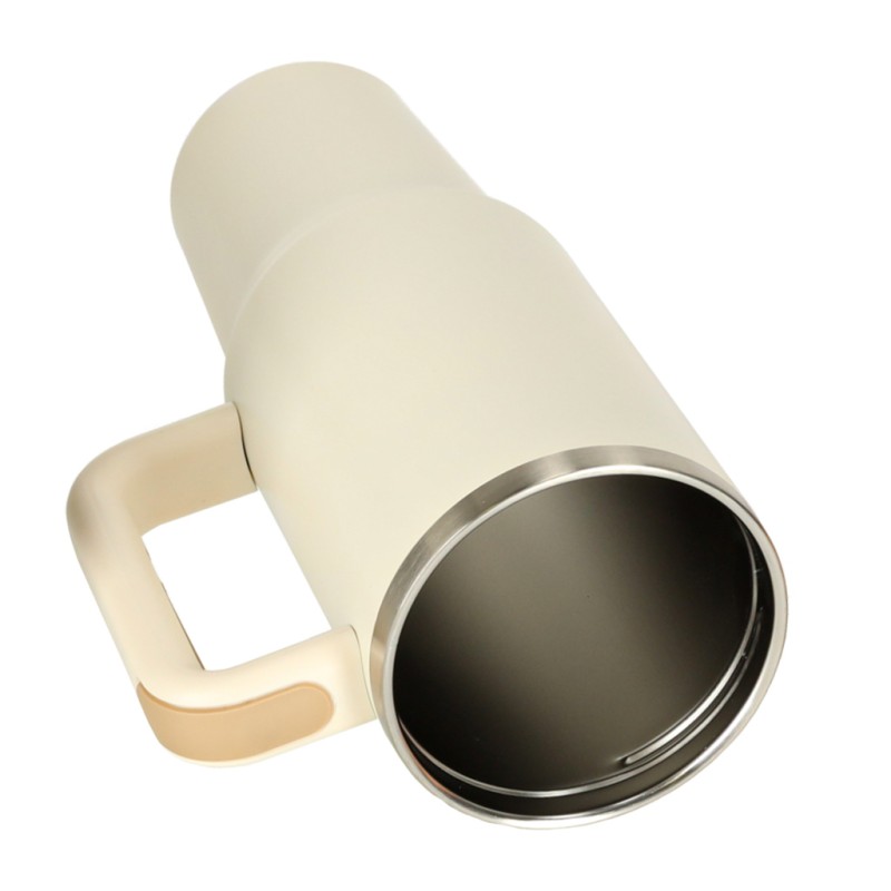 DUŻY KUBEK TERMICZNY Z UCHWYTEM 1,2L - STALOWY KUBEK TERMICZNY ZE SŁOMKĄ - IDEALNY DO WODY KREMOWY