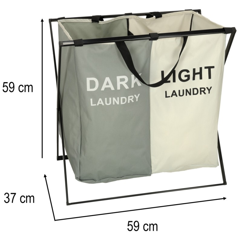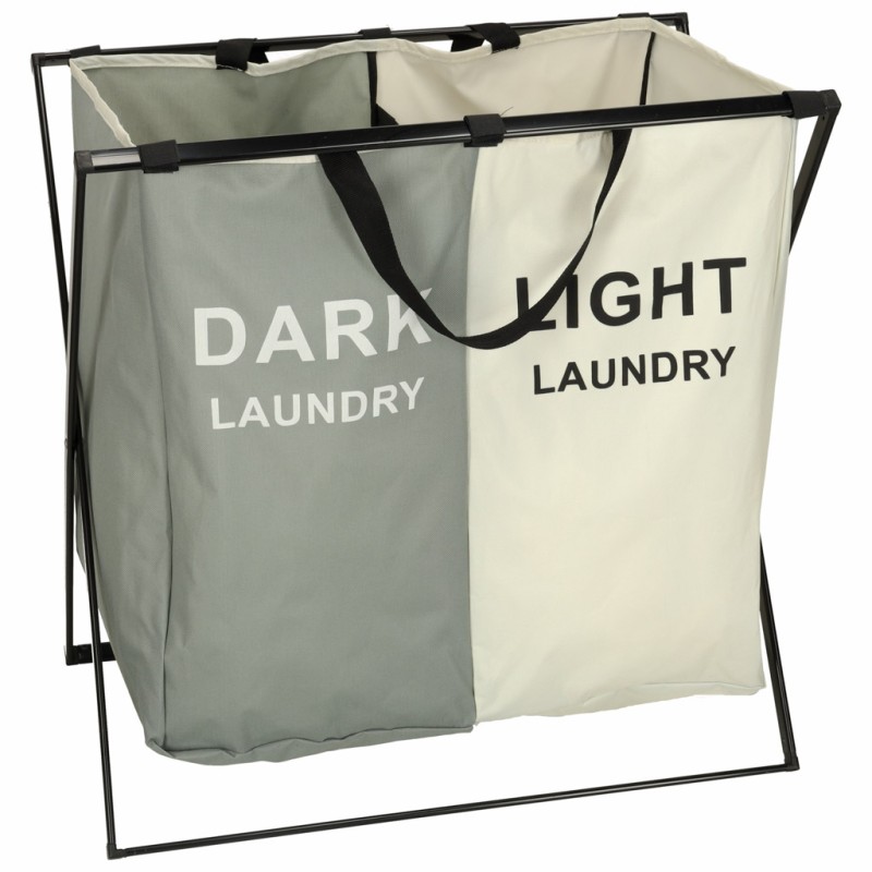 Zapomnij o zafarbowanych skarpetkach! Poczuj ulgę, jaką daje łatwa i szybka segregacja prania. Kosz na pranie z przegródkami i z oznaczeniami to Twój osobisty organizer, który sprawia, że segregacja prania staje się intuicyjna. Kluczem są dwie komory - to perfekcyjny i wygodny podział. Kosz umożliwia łatwą segregację na jasne i cemne kolory, co realnie oszczędza czas przed wrzuceniem wsadu do pralki. Materiałowy kosz na pranie w biało-szarej kolorystyce to synonim stylu i funkcjonalności.