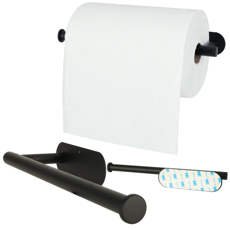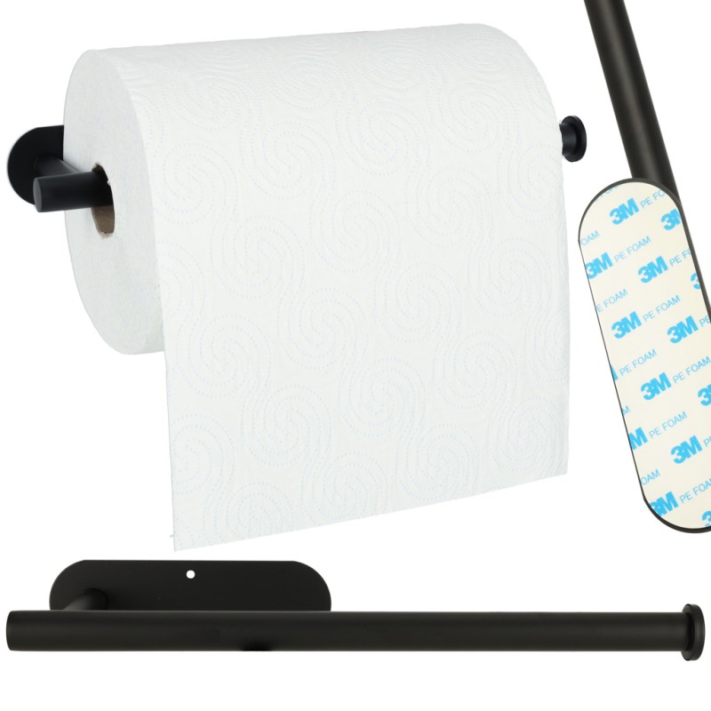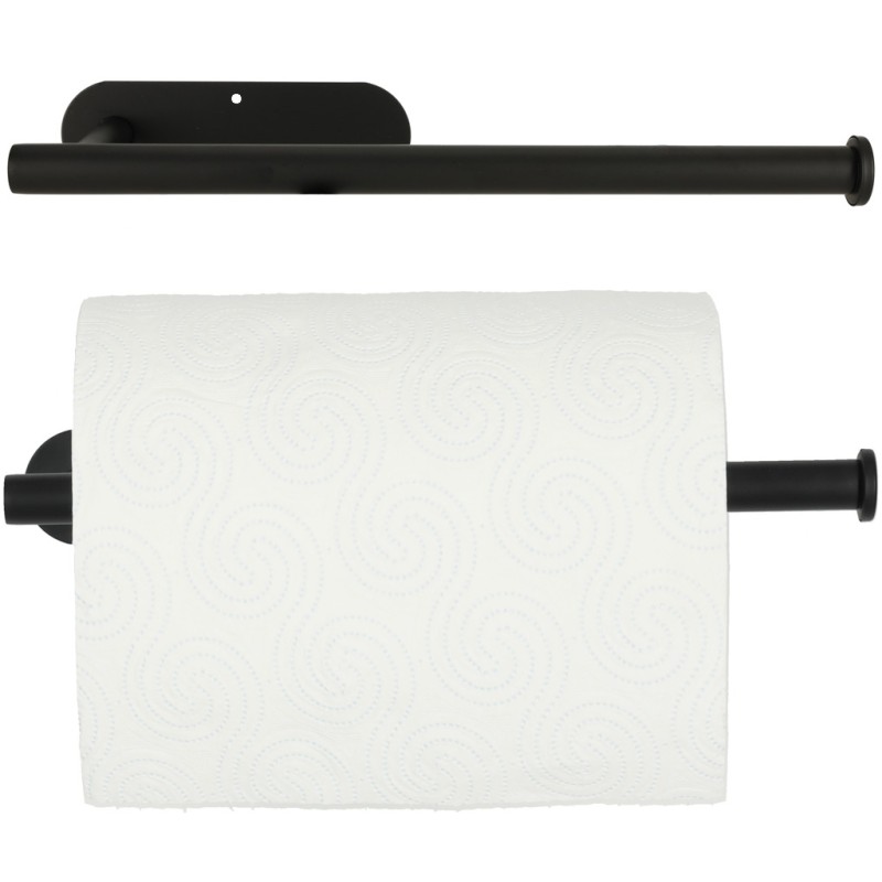 Czarny uchwyt na ręcznik papierowy. Minimalistyczny wygląd i matowe wykończenie będą doskonale prezentować się w każdym wnętrzu. Pomieści nawet dużą rolkę ręcznika papierowego. Montaż bez wiercenia. Wymiary: 32 x 8,5 x 14,5 cm.
